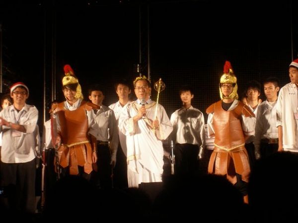 成功校長穿的一個希臘神的樣子出現...(好像杜X盛)